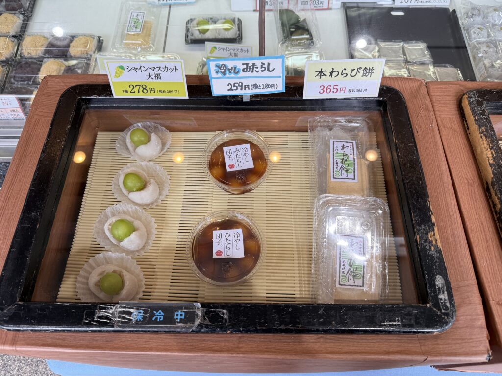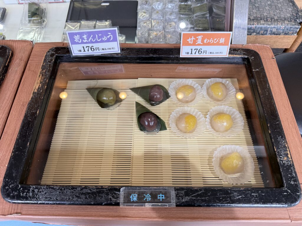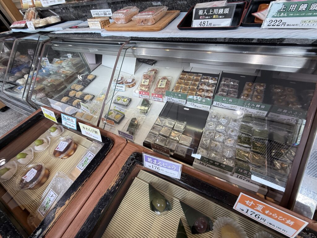 うどんやそばのお持ち帰りもありますが、和菓子も品ぞろえ豊富です。