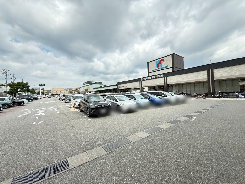 万代やロイヤルホームセンターと併設で同じ駐車場にも停められるので、