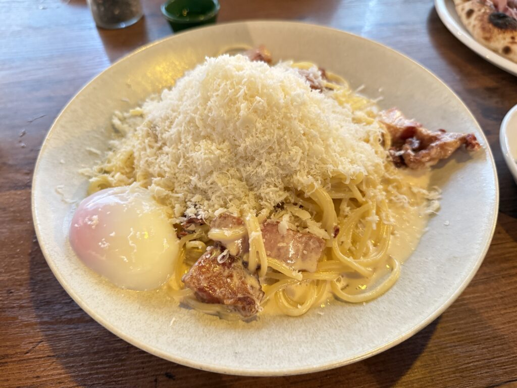 ベーコンの香ばしさにカルボナーラ全体がつつまれていておいしいです。