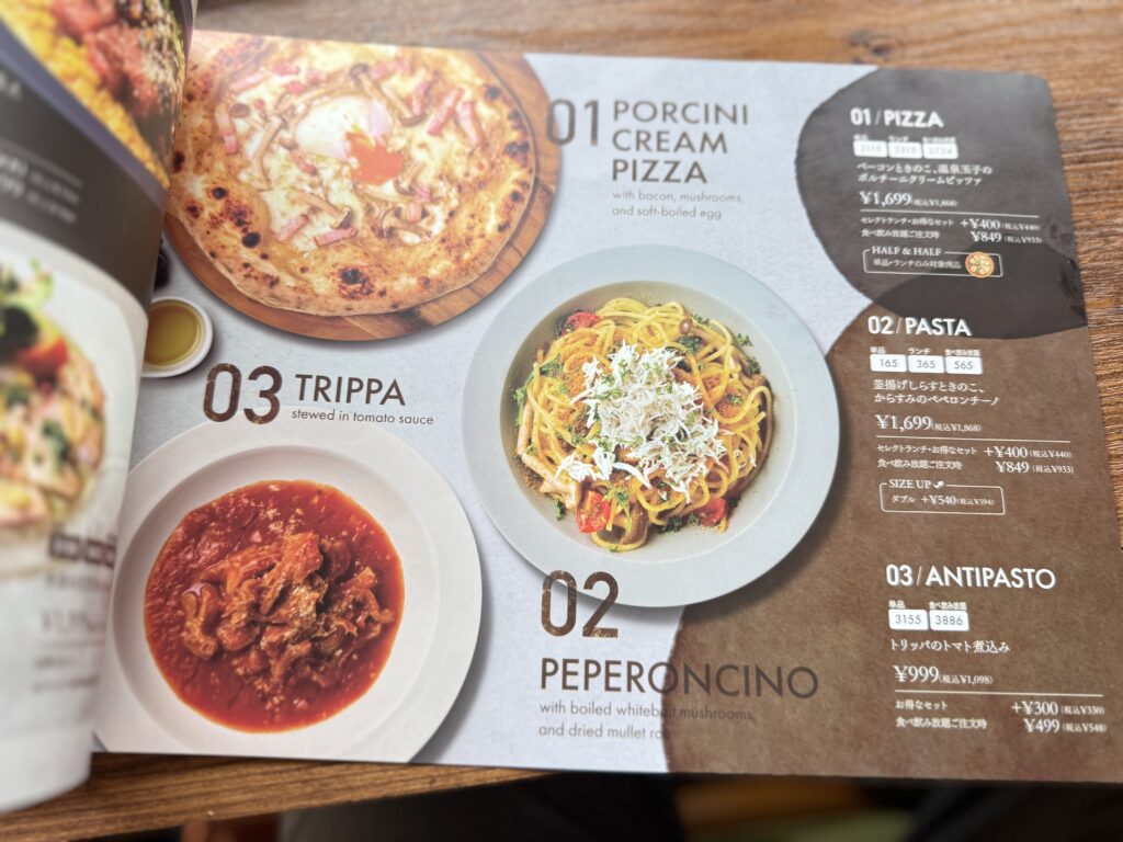 ピザやパスタの種類も多く、ボリュームも多めのイタリアンのお店です。