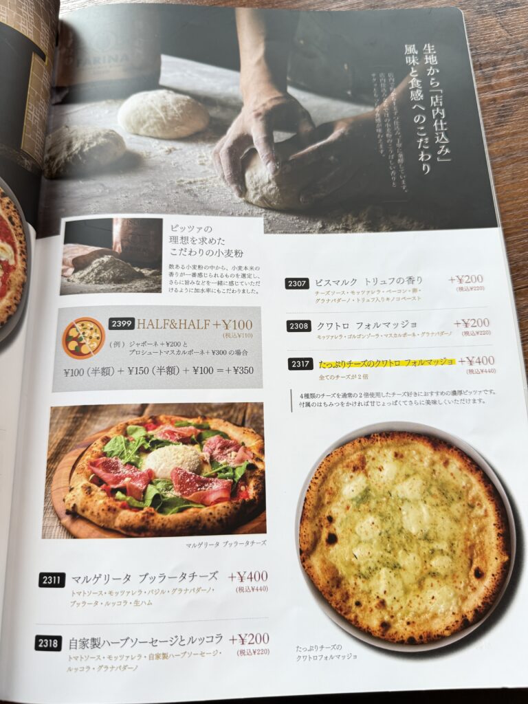 食べ応えのある生地は香ばしく、ソースやルッコラのフレッシュさとともに楽しめます。