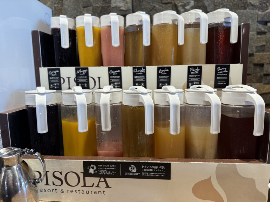 ドリンクバーには色々な種類のフルーツジュースもあり、おいしかったです。