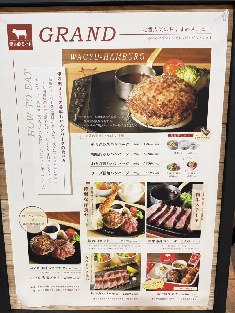 川西市アステにある日本式洋食レストラン「津の田ミート 川西店」。