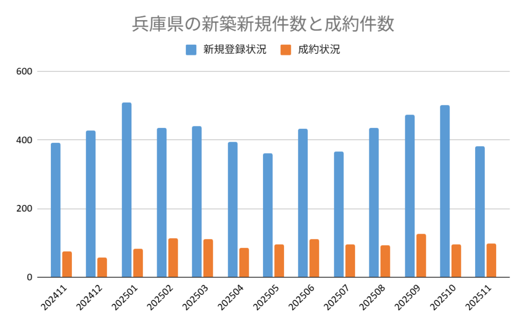 - 2.2. 兵庫県の新築戸建新規件数と成約件数