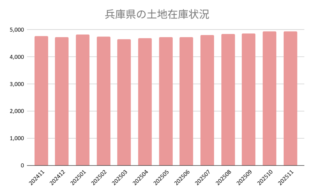 兵庫県全体は在庫が微増でしたが、阪神間北部のエリアを見ると在庫が少し減少するような動きを見せています。