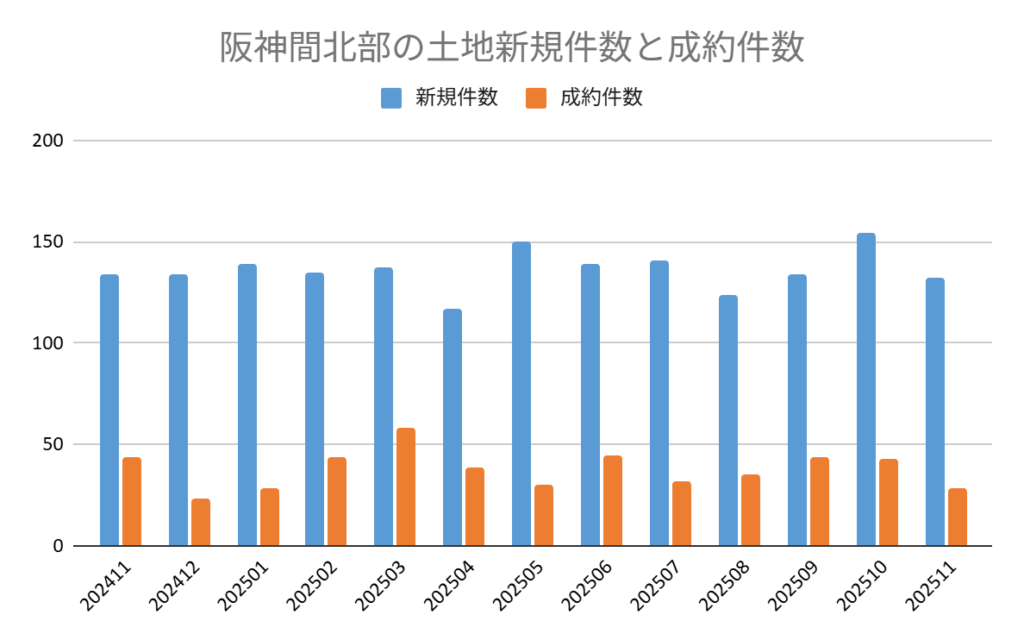 - 5.2. 阪神間北部の土地新規件数と成約数