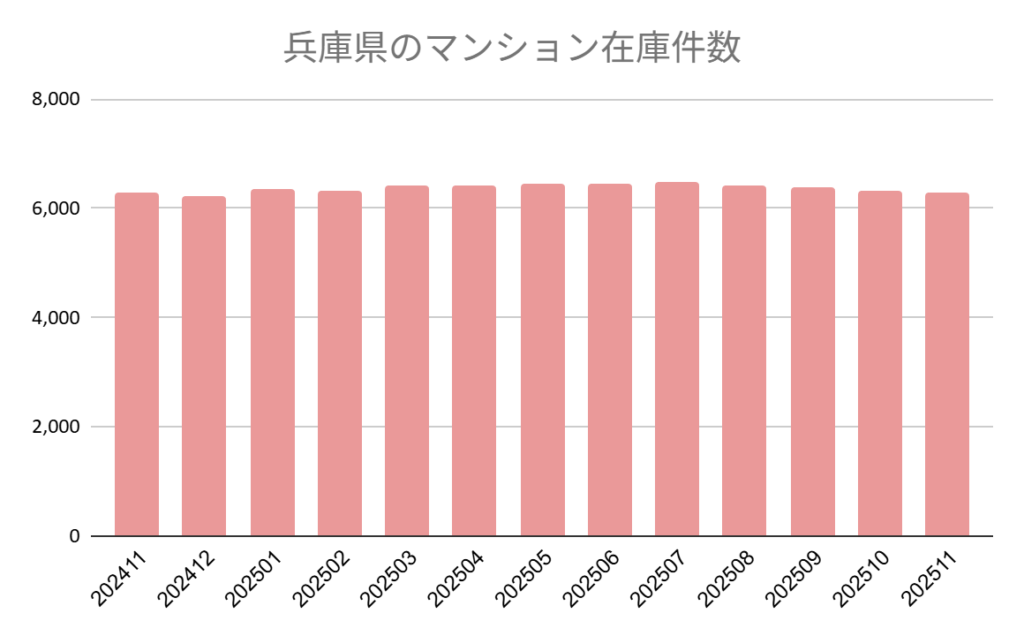 兵庫県全域のマンションの在庫は前月比で微減した月となりました。