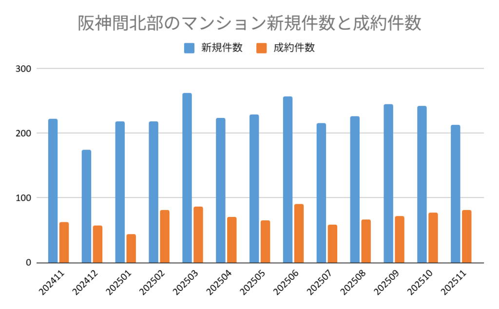 - 4.2. 阪神間北部のマンションの新規件数と成約件数