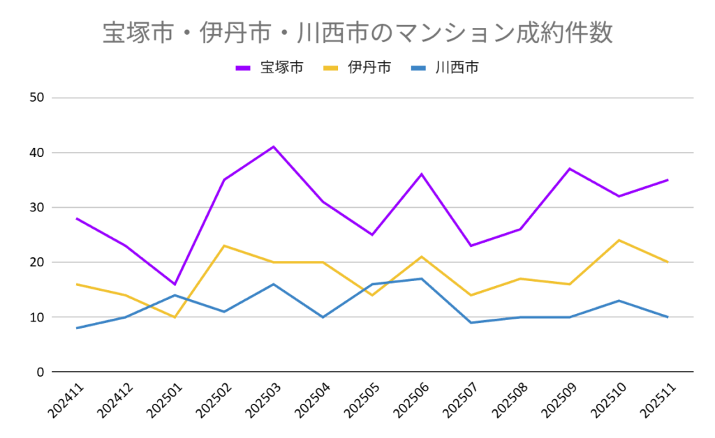 - 4.3. 宝塚市・伊丹市・川西市のマンションの成約数