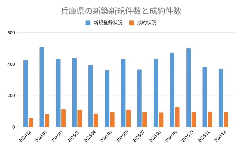 - 2.2. 兵庫県の新築戸建新規件数と成約件数