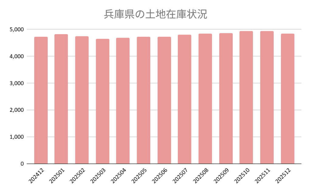 トピックとしては土地の大幅な減少と、兵庫県のマンションの在庫が下がり続けていることです。