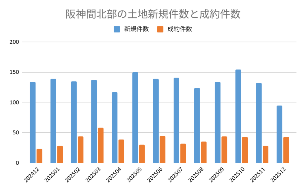 - 5.2. 阪神間北部の土地新規件数と成約数