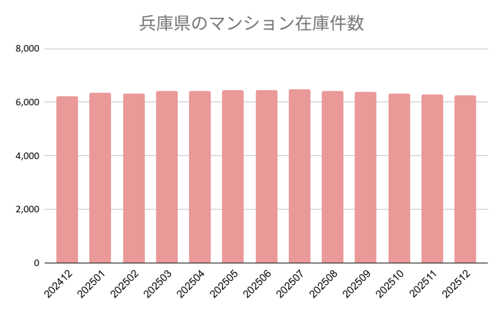 兵庫県全域のマンションの在庫は前月比で微減した月となりました。