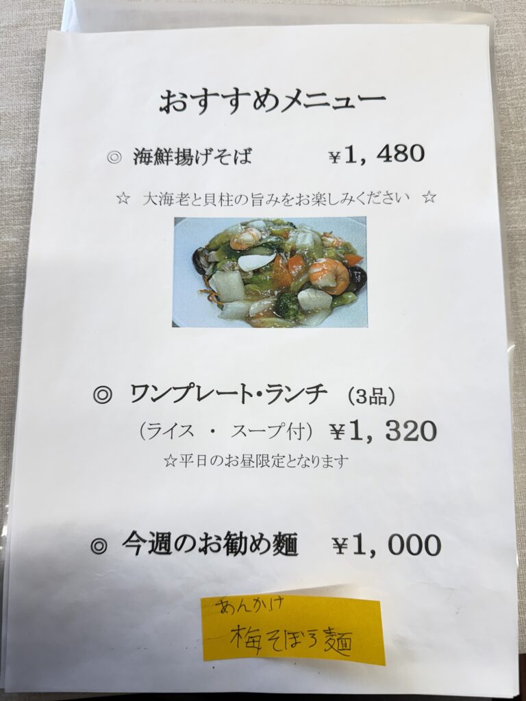 ランチタイムに行きましたが、おすすめメニューと単品メニューがありました。