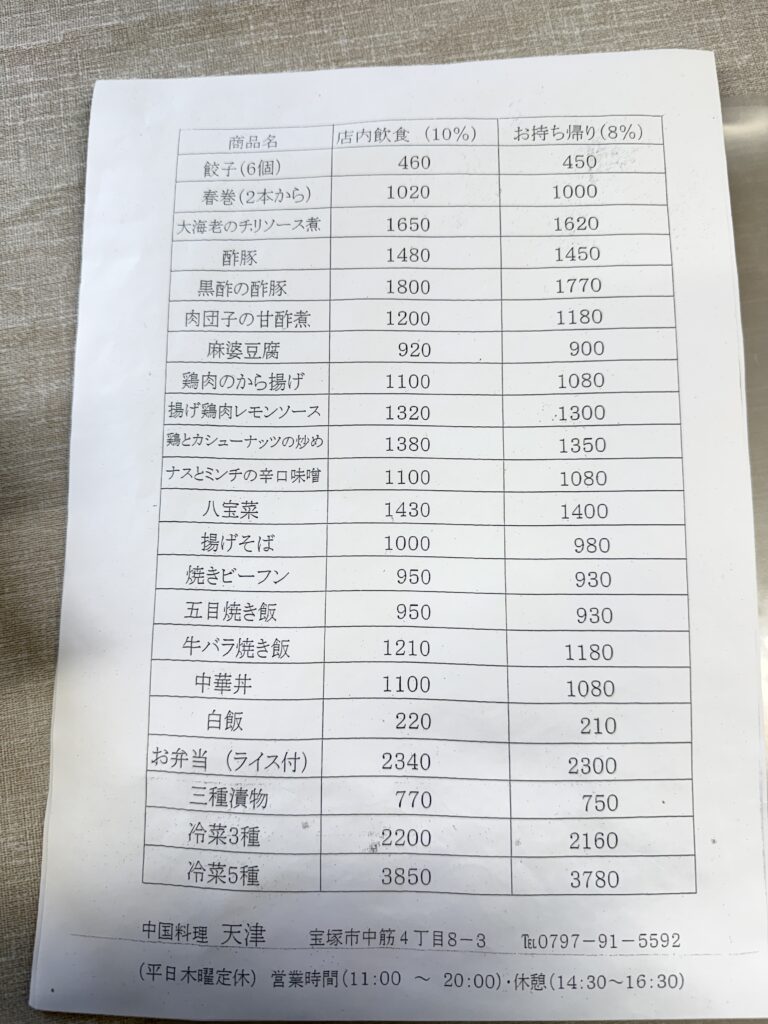 宝塚市にある中華料理店さん「中国料理 天津」