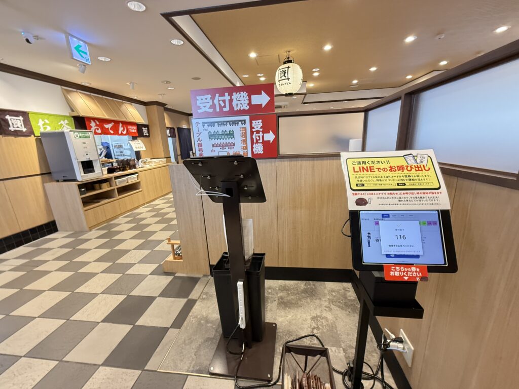 番号札が発行されて、順番になると番号で呼ばれます。