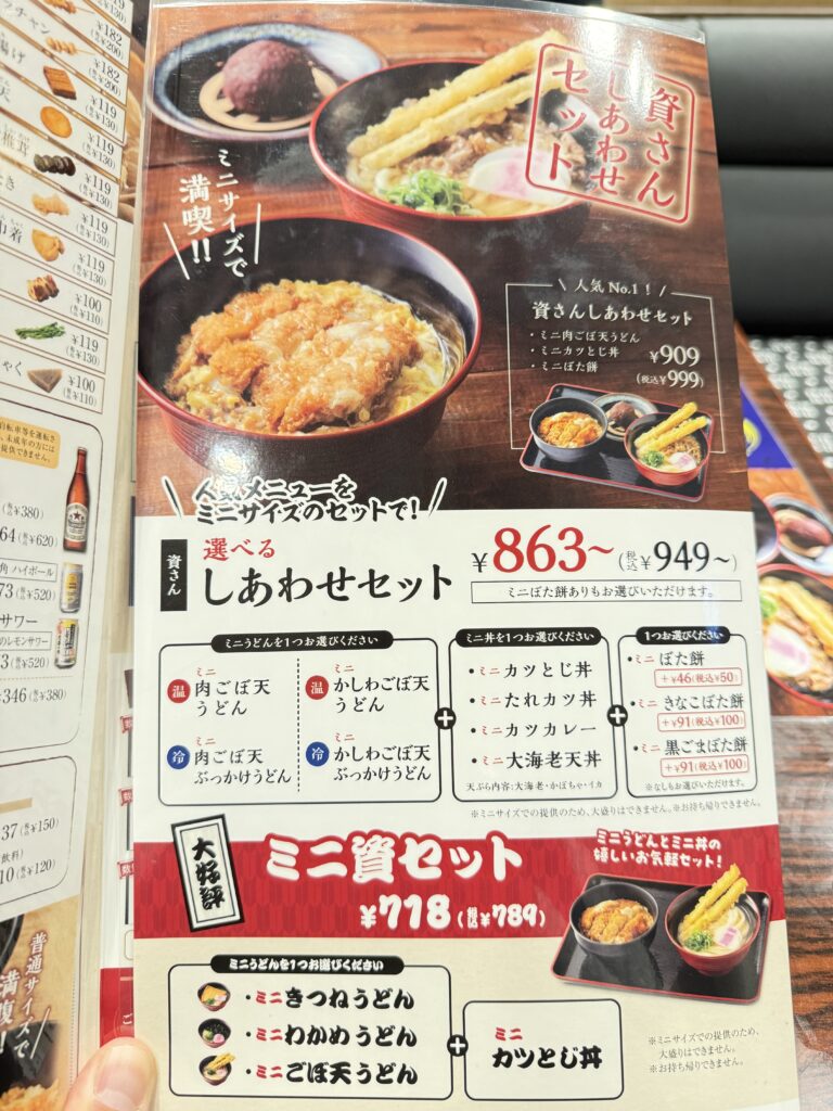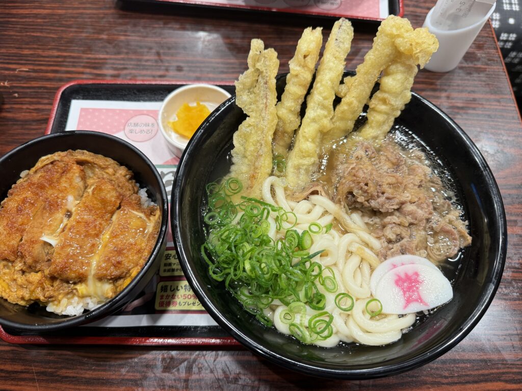 肉ごぼ天うどん(大盛)ミニカツとじ丼セット 1,418円