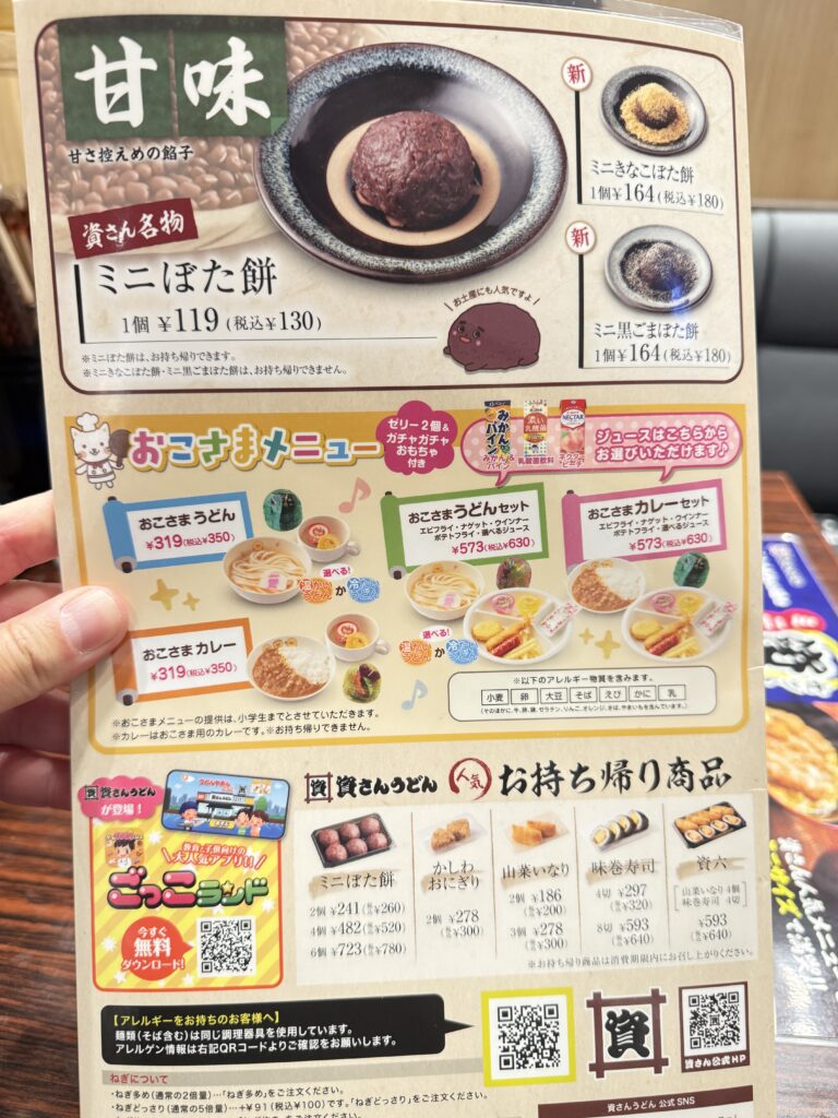 おでんや甘味、お子様セットやお得なセットもあります。