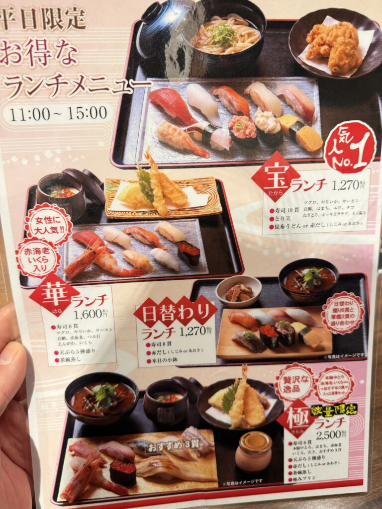 宝塚市中筋にある回転寿司屋さん「すし一流 宝塚店」のランチセット